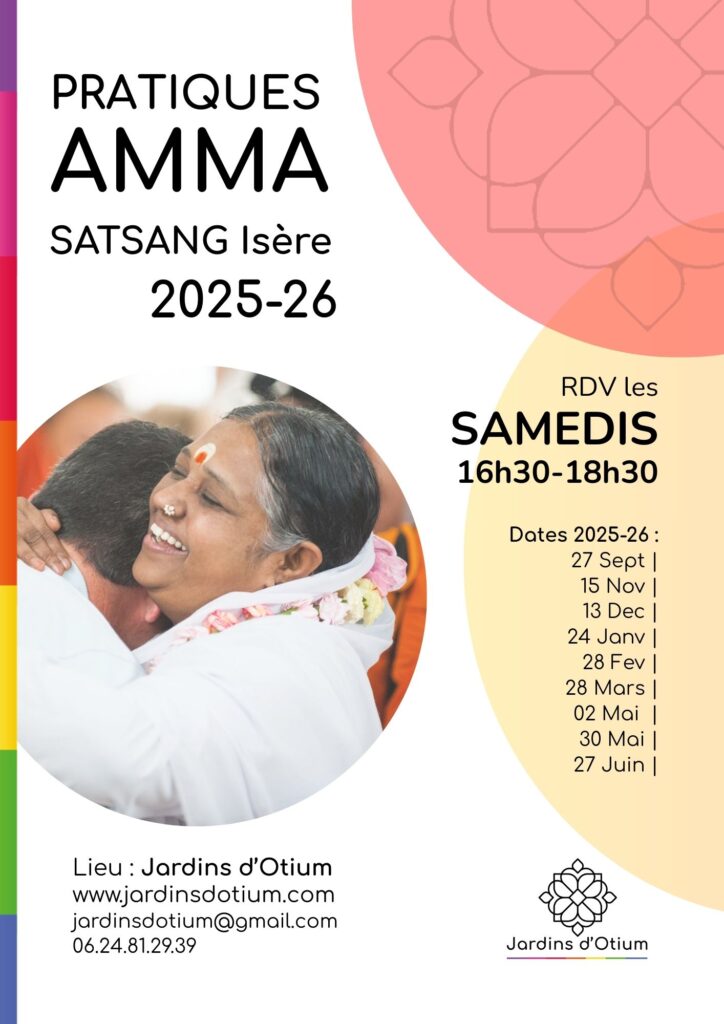 Ces pratiques proposées par Amma sont accessibles à tous, quelque soit la religion ou l’origine culturelle. Elles donnent la force à chacun d’être un acteur conscient de sa propre vie, de trouver les ressources pour faire face aux situations difficiles et de développer des qualités de service et d’amour.